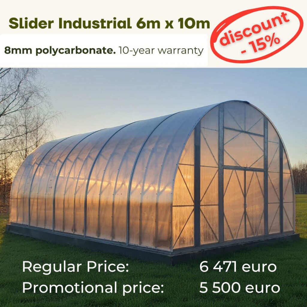 - A great opportunity for those looking to save. Purchase the House, the Slider model silver color with a width of 2m, 2.5m and length up to 10 meters. End panels: 4mm polycarbonate, main covering: 6mm or 8mm polycarbonate.