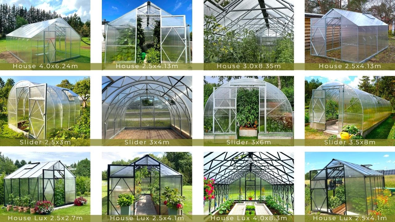 Kattematerjali paksus (seinad ja katus) – 8 mm 6 mm hinna eest, 10 mm 8 mm hinna eest. Polükarbonaadi tihedus aitab stabiliseerida temperatuuri kasvuhoones.