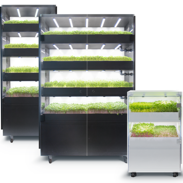 - Premifarmi nutikasvuhooned: Efektiivne ja säästlik lahendus rohelise ja mikrorohelise kasvatamiseks aeropoonikal. Sobib ideaalselt restoranidele, haridusasutustele, kontoritele ja teistele organisatsioonidele, kes soovivad kasvatada värsket saaki kohapeal.