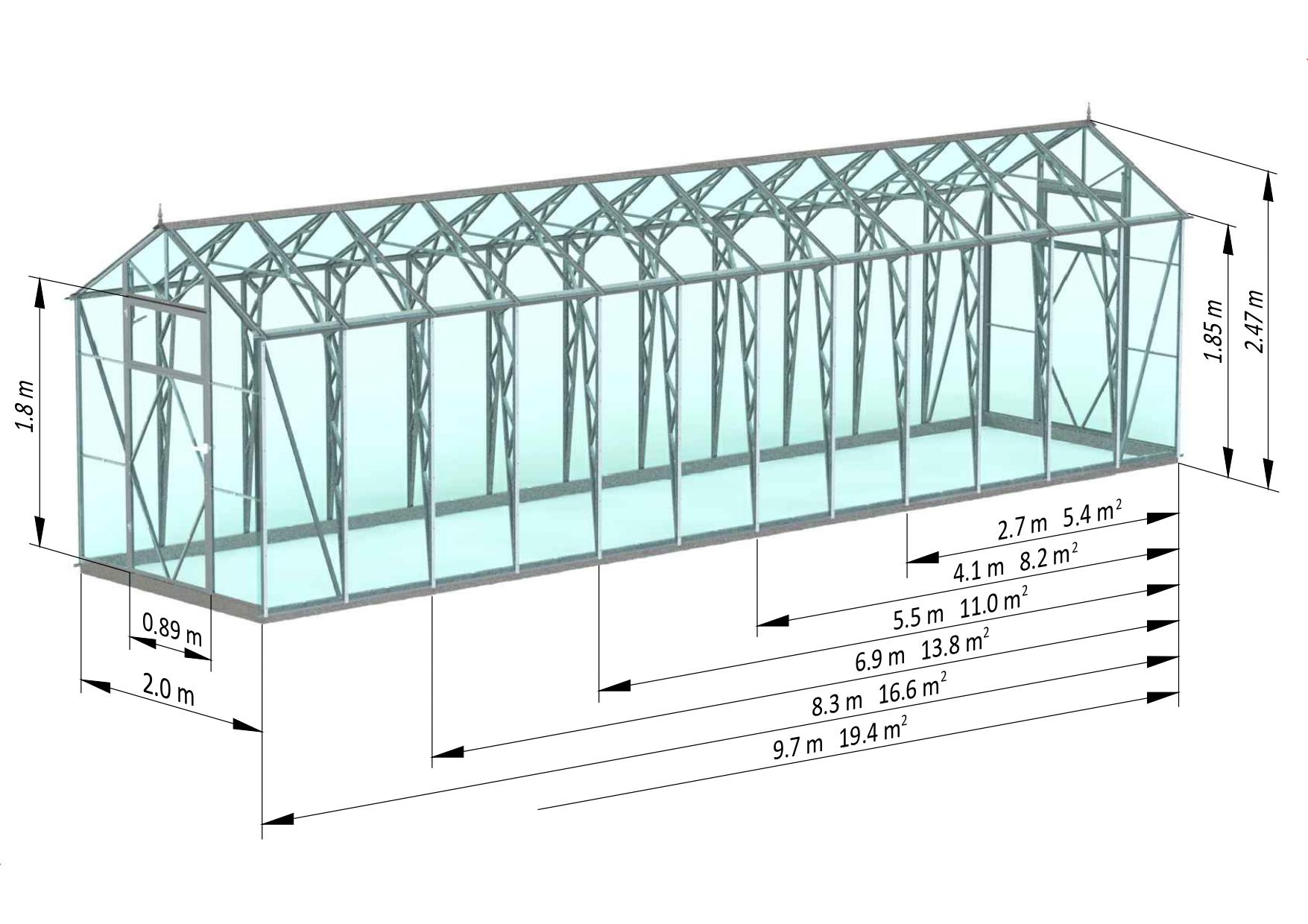 Ecoslider House Lux 2 meetri laiuse kasvuhoone põhikomplektist piisab, et tunda end mugavalt aiatöid tehes.