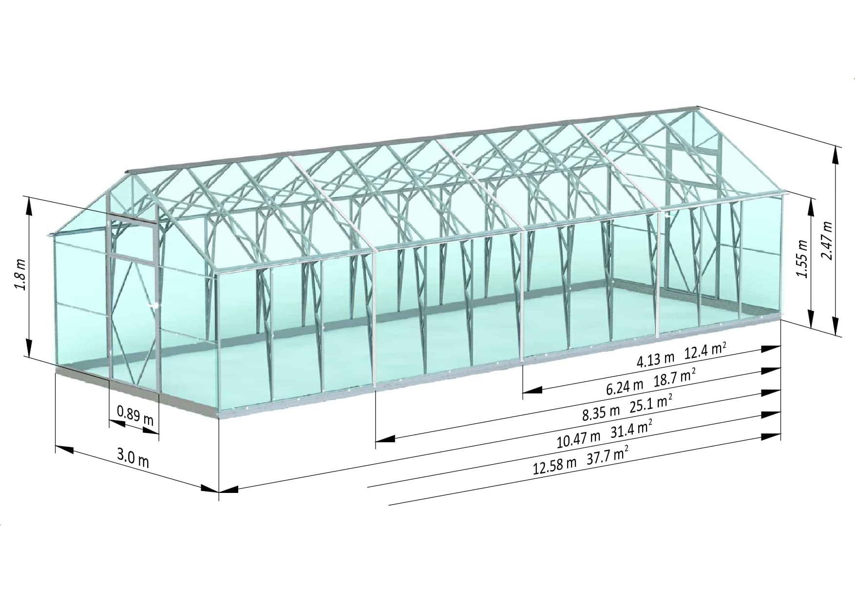 Meie klientide seas on kõige populaarsemad kasvuhoone suurused 12 / 18 / 24 ruutmeetrit (3x4m, 3x6m, 3x8m). Nimetatud mõõdud sobivad ideaalselt koduseks kasvatamiseks kodu lähedal.