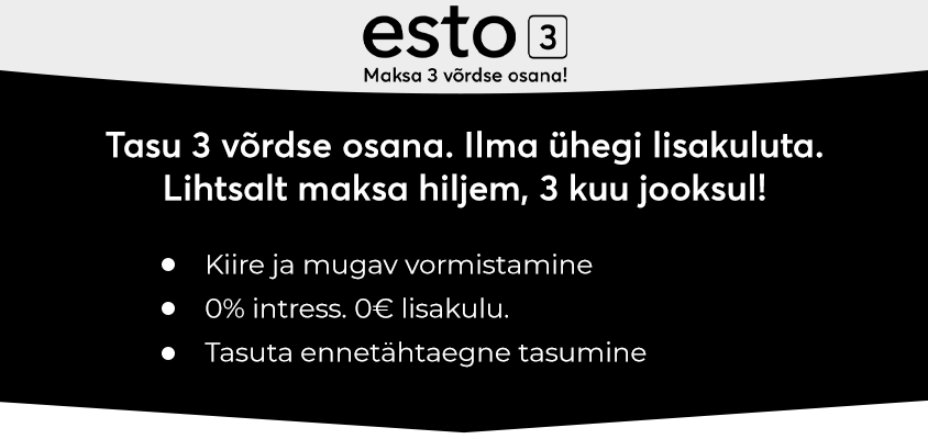 - Размер ежемесячного платежа вы узнаете, разделив стоимость корзины покупок на три равные части. Минимальная сумма корзины покупок при использовании ESTO 3 составляет 60 евро.