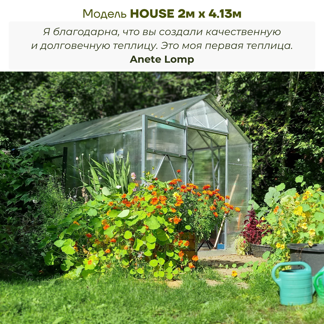 Особенность модели: - Покрытие — сотовый поликарбонат с УФ-защитой. торцы - 4мм, стены и крыша - 6мм / 8мм / 10мм. - Незначительный косметический дефект в торцах, не влияющий на надежность и функциональность. - Гарантия на конструкцию (сквозная коррозии) и поликарбонат — 10 лет. Движущиеся элементы — 2 года. - Доступные размеры: ширина 2м или 2.5м, длина - 2м - 4.13м - 6.24м - 8.35м. - Скидка на теплицу от -17% до -33%. - Дополнительно: установка со скидкой -25%.