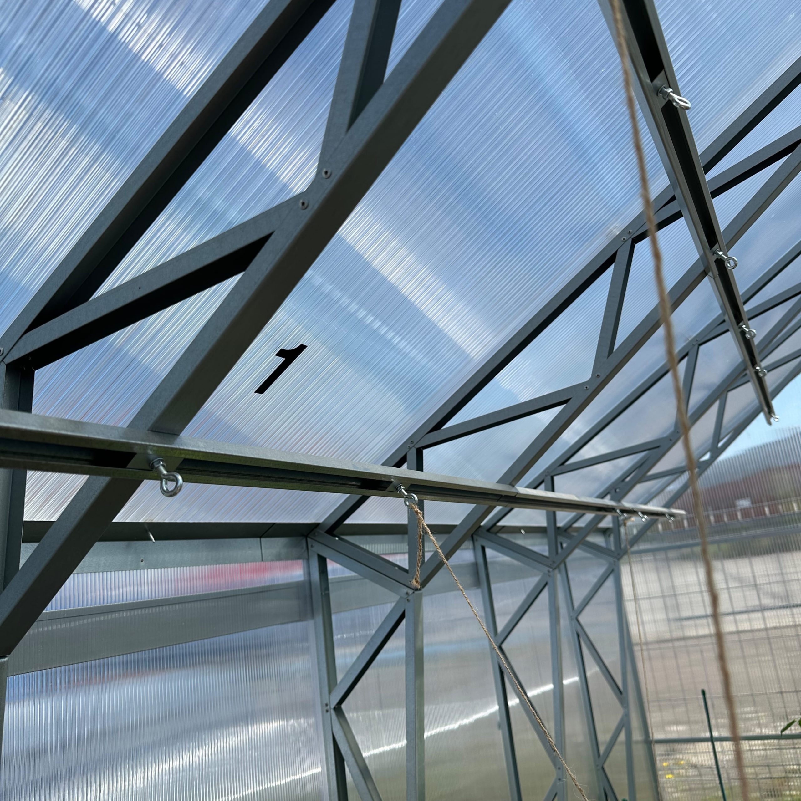 Комплект для подвязки растений подходит для двускатных теплиц Ecoslider House типа «хобби». Удобное решение для садоводов, которые выращивают высокие культуры.