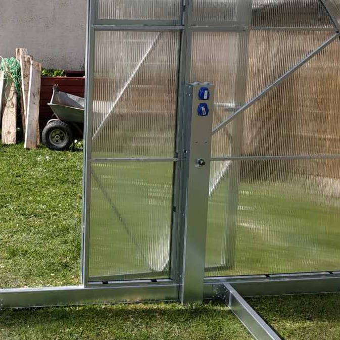 По результатам проведенных исследований, выяснилось, что многие клиенты используют электроприборы внутри теплицы (дополнительное освещение, обогреватель, система автоматического полива и т.д.). Большинство пользователей теплиц испытывают неудобства связанные с использованием электрического кабеля и шланга для полива внутри теплицы. Заводить шланг или кабель через открытую дверь, как правило неудобно, так как дверь невозможно будет плотно закрыть.