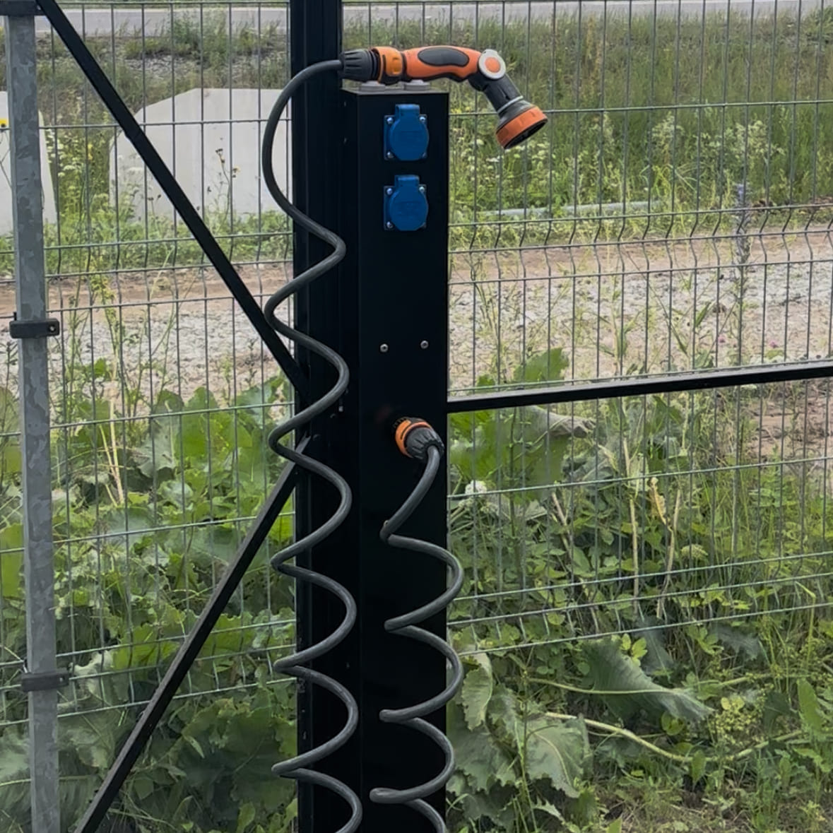 Для удобства эксплуатации теплиц EcoSlider сотрудники нашей компании разработали удобное решение для подключения электрических приборов и шланга в одном модуле.