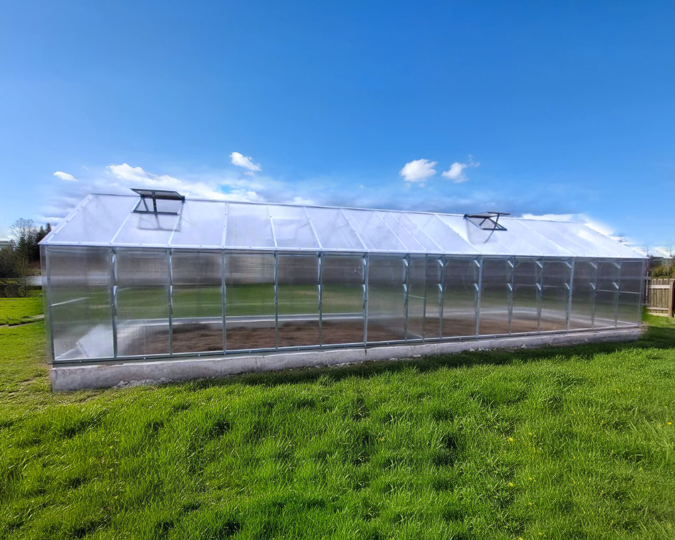 Meet the Ecoslider House 2×10.47m (area 20.94 m²) — a long, bright greenhouse for gardeners who dream of real harvest volume, not just a few beds. Slim in width but impressive in length, it is ideal for narrow but extended plots and side gardens along fences or buildings. The clean silver steel frame reflects light and keeps the structure visually airy, so even at over ten meters long it looks neat and elegant, not heavy or bulky. Inside, this House turns into your own “greenhouse avenue”: long tidy beds on both sides, space for tall beds, a separate zone for seedlings, supports for tomatoes and cucumbers, herbs by the path, maybe even a small seating corner at the end. The generous length makes planning and crop rotation easy — early greens and seedlings in one section, fruiting crops and late-season plants in another. Engineered for northern climates, the steel structure confidently handles wet snow, strong winds, and temperature changes. A carefully thought-out ventilation system — two end doors with integrated windows, Smartventor end vents, and five manually operated roof vents — helps you keep air fresh, temperatures stable, and plants happy from early spring to late autumn.