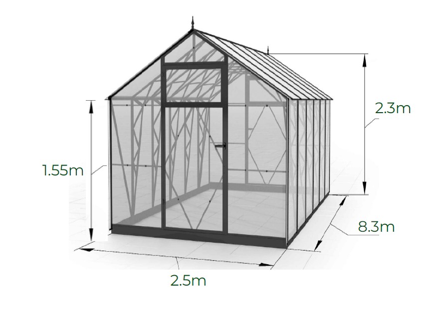With the Ecoslider House Lux 2.5×8.3m, your garden gains style, functionality, and freedom to grow — a true black pearl for every gardener.