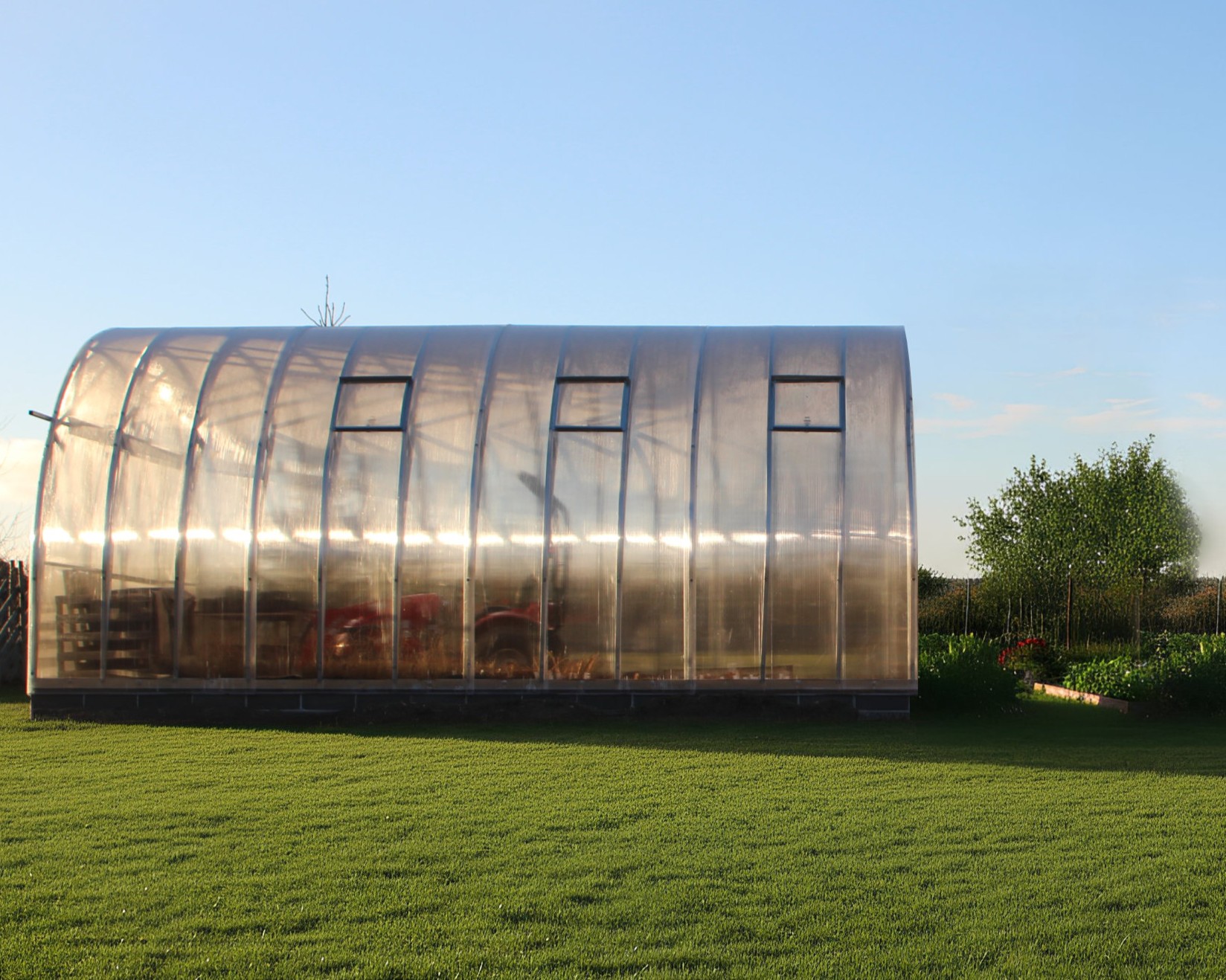 • Efficient polycarbonate envelope: European cellular polycarbonate with UV protection; 10 mm panels on the roof ensure excellent insulation and durability.